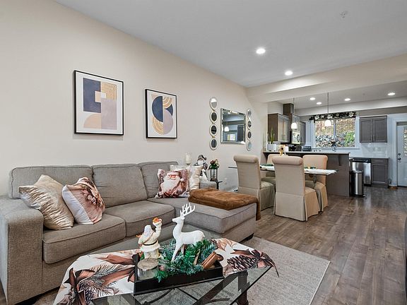 Laminate floorsInviting kitchenQuartz countersSs appliancesFunctional dining areaWindow seatModern ensuite