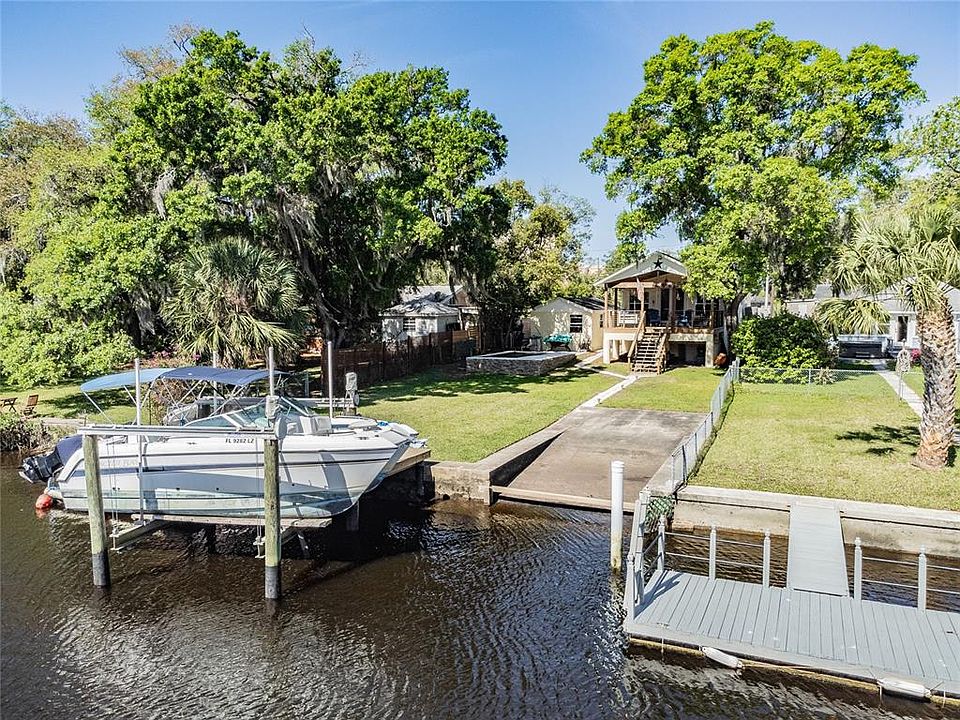 The buyer's financing fell through. Welcome to this beautiful home near the heart of the Downtown City of New Port Richey. This custom-built (2017) home has 3 bedrooms 2 bath, POOL home nearly 1600 square feet of OPEN living located right on the WATER with a detached garage. Once you enter the home you will appreciate the cathedral ceilings, CERAMIC tile throughout, all the beautiful upgrades with TONS of natural lighting. Plenty of seating around the HUGE granite island that seats 10 or more. Gas stove w/pot a filler, stainless steel appliances, white shaker cabinet with easy close with wine rack, pull out cabinets, spice rack and more. Utility room and pantry with washer and dryer easily located just off the hallway. Both guest bedrooms are great in size with large closets. Very large master bedroom with 2 walk-in closets. Master bath has 2 vanities and a large step in shower with rain shower head. 5-panel solid wood interior doors throughout. Home is VERY efficient with Double-pane Hurricane impact Windows throughout, TANKLESS water heater, foam insulation in the walls and roof, frame construction with hardie board siding. Make your way to the backyard through the 8FT French doors w/blinds onto your 320 square foot covered porch with large fan. Park like setting located right on the river with your very own PRIVATE boat ramp for ease of putting your jet skis or kayaks. Boat lift and floating dock built with composite. Water and electricity at both docks.