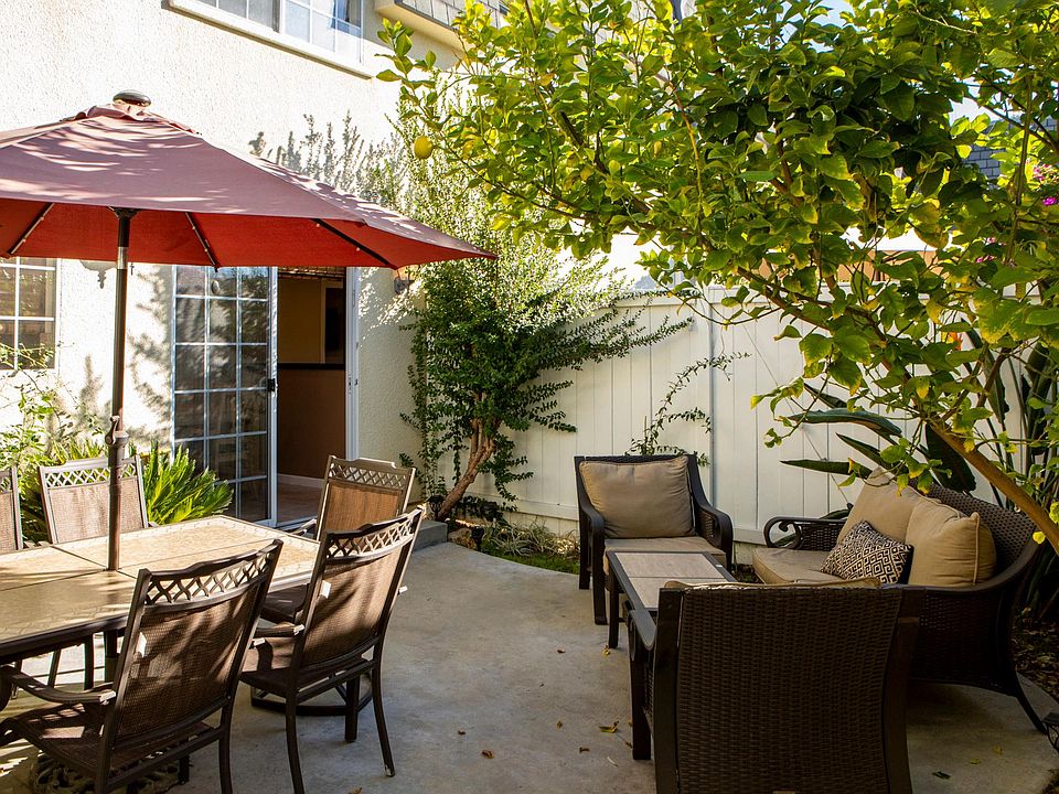 Beautiful 3 bedrooms and 2 baths, 2 story townhouse in a resort-like complex. Private patio with outdoor dining set, lounge area & BBQ. Private washer&dryer, fully-equipped kitchen, dining table for 4, 4 TVs, & high-speed internet. Communal Olympic swimming pool, Jacuzzi & 2 tennis courts. Great for families & business travelers! 1 car garage&additional space w/permit. Close to Vanalden Ave Elementary School, Woodcrest School&Woodcrest Preschool. Convenient access to 101 fwy.
