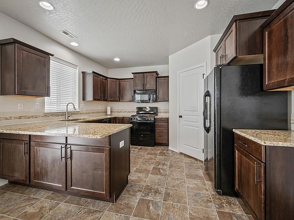 This 2,230 sq.ft. home includes a main floor office, 3-car garage, covered porch, covered patio, shed and laundry room. In the kitchen you'll enjoy granite counters, staggered cabinets, and a walk-in pantry. The large master suite includes a walk-in closet, dual sinks, soaker tub, step-in shower, and linen closet. This home sits on a .18-acre corner lot with a fully fenced big backyard. Home is Located near Majestic Park.