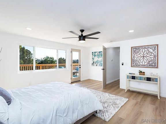 Location, Location, Location! 6027 Charae Street welcomes you to this beautifully remodeled two story detached home located in University City. This home is a 5 bed/3 ba, 2 car garage with views and leased solar, features an open concept that is bright and light perfect for entertaining with the indoor-outdoor living concept that includes a pool and hot tub. The kitchen offers a quartz island with pendant lighting over the island, a farmhouse sink with a commercial style faucet, stainless steel appliances with a microwave drawer, 5 burner gas range, a wall mount range hood, dishwasher, backsplash tile and soft close doors and drawers. This home also has recessed lighting, luxury vinyl wide plank flooring throughout, a walk-in closet, ceiling fans, A/C and a 1 bed/1ba that is located downstairs. Love where you live, just under 8 miles to Windansea Beach, 3 miles to UCSD, 2 miles away from Westfield UTC where you can experience the trendy eateries and upscale fashion chains, trails nearby for hiking, biking and more. Make this house your home today!