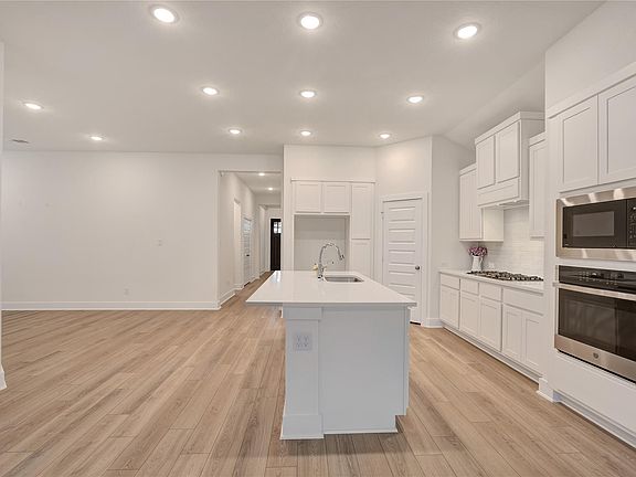 This stunning one-story home features 4 bedrooms and 3 bathrooms. Enter through a gallery-style foyer that provides a warm welcome. The home includes a casual dining area, perfect for evening meals, and a central kitchen island for added convenience. The primary suite is a relaxing retreat, complete with a large walk-in closet, a bathroom with dual sinks, and a luxurious bath. Unwind in the evening by watching the sunset from the covered outdoor patio. Conveniently located near Texas Heritage Parkway with easy access to FM 1093. The community offers numerous amenities, including on-site schools and a nearby library. Room sizes are estimates. This is a must-see.
