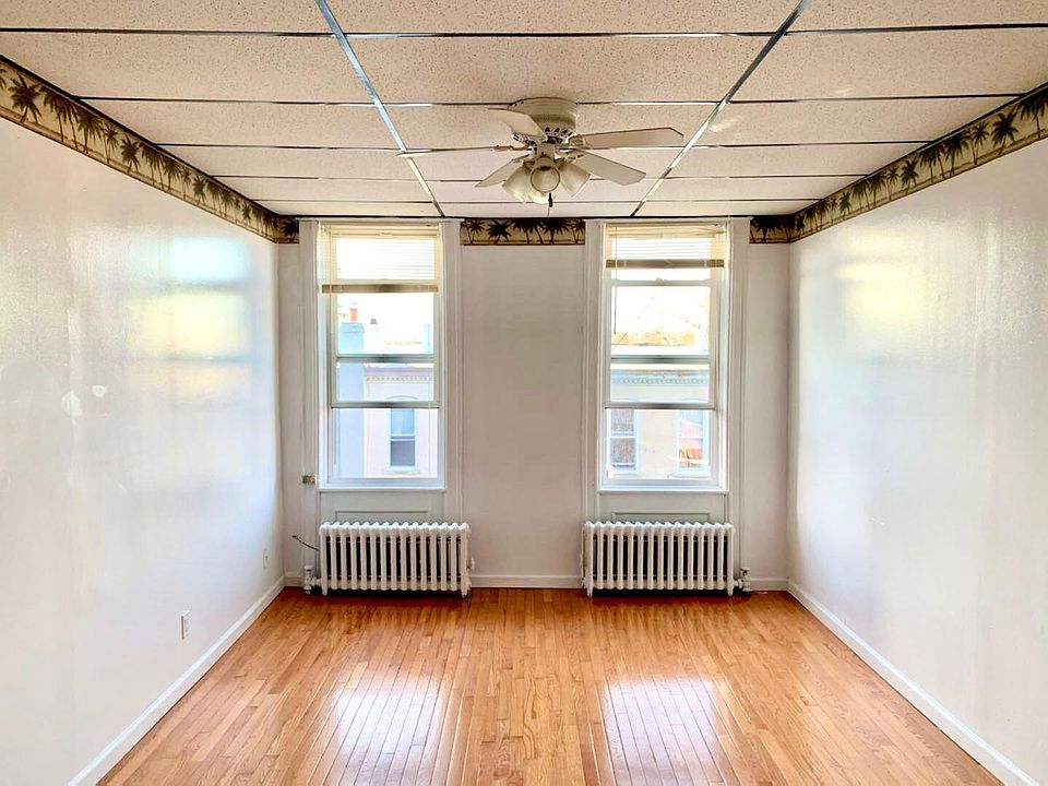 Open house: Saturday 4/17 from 12-1pm Huge 2-bedroom apartment. 1,000 square feet. New renovation, hardwood floor throughout. One large and one small bedroom. Massive living room; formal dinning room; 3 closet space. Brand new S.S. refrigerator and stove. Brand new bathroom. Great neighborhood, minutes to L/M trains, 30 minutes to downtown Manhattan. Shopping downstairs. No smoking or pets. Income and credit check required. For more info, please contact with agent Dorcas Guan (tenant don't need to pay broker fee) Hot water and heat included