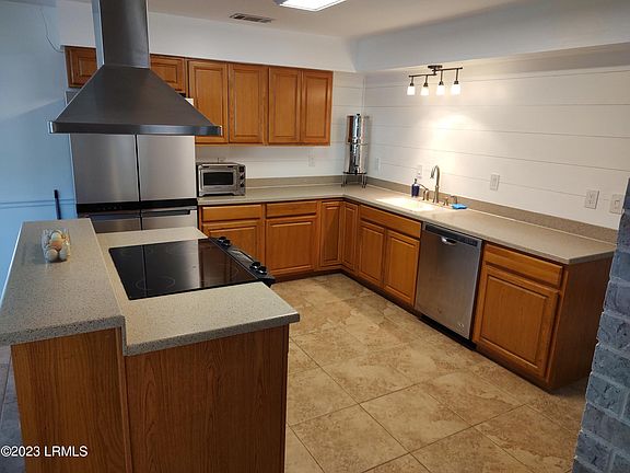 Beautiful Live Oaks throughout this almost 1/2 acre corner lot. Enjoy what brings so many to the Lowcountry, ample outdoor space including large deck, fire pit area, hammock, trail, chickens, kids play areas, and plenty of more space to do your own thing. There is also a 2015 Sunset Trail Camper hooked up to electric included. Great for staycation camping, taking on the road, possibly income producing Air BnB, home school room, home office, guest sleeping, etc.