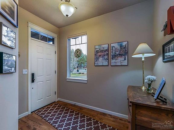Single level townhome in the desirable Stonegate neighborhood. Open floor plan with a gas fireplace, vaulted ceiling, skylights, and beautiful hardwoods and blinds throughout. The kitchen is roomy with concrete counter tops, stainless steel appliances, lots of cabinets, and a walk-in pantry. The master suite is spacious with a walk-in closet and en-suite bathroom with tile counters and floor. Spacious fenced back yard with low maintenance landscaping, a bubbler water feature and a large paver patio for entertaining. Located close to the community pool, hot tub, trail, and park. HOA covers the pool and common areas, and front yard landscaping. Easy access to Highway 97, shopping and restaurants.