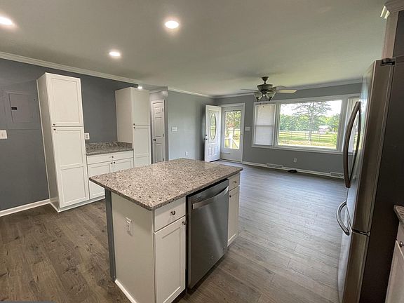 New Lower Price ! What a fantastic all brick, meticulously remodeled and conveniently located home on TWO FLAT ACRES. With an open floor plan, enjoy an expansive and sunny Living Room with Picture Window, a gourmet Kitchen with White Cabinets, Grey Granite Counters, and SS Appliances to include Refrigerator with Ice Maker and Water Dispenser, built in Microwave, Dishwasher, and Electric Range Use the spacious Island for meal prep, enjoying meals, or doing homework! As a Bonus, there is a Station which could be used for coffee, built in Bar, or whatever you can imagine and it is also equipped with double Pantry Cabinets as well as an additional base cabinet for storage. You will also love the tastefully coordinated backsplash. Off of the Kitchen, find the Laundry Closet which can be accessed from one of the Two Ample Sized Bedrooms each with Two Windows and Closet. The Two Bathrooms have been beautifully tiled, with new fixtures, one with a Tub/Shower and the other with a tiled Walk-In Shower. Stunning! Off of the Kitchen, enjoy the tranquility as you have your morning coffee or evening meal on the freshly stained Deck. There are also Three Sheds, Detached Carport, and plenty of Yard for outdoor fun. NEW HVAC, ROOF, WINDOWS, Blown in Insulation, and Insulated Crawlspace. this home is Move-In Ready. Schedule a showing Today!