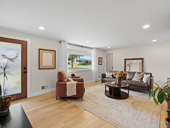 Charming and beautifully renovated brick rancher on a corner lot in North Spokane! Conveniently located just minutes from Trader Joe’s, World Market, and Northtown Mall, this 1955 home blends classic character with modern updates. The main floor offers spacious living with bedrooms, a dining room, and a cozy wood-burning fireplace. An office provides flexibility as a potential extra bedroom. Downstairs, enjoy a fully finished basement featuring a large family room with a bar, another wood-burning fireplace, and a non-conforming bedroom. Outdoors, you’ll love the expansive patio—perfect for summer entertaining—along with a garden, sprinkler system, and fenced RV parking. A two-car garage with EV charging completes this move-in ready gem! 1 yr home warranty provided!