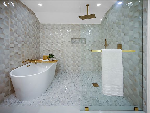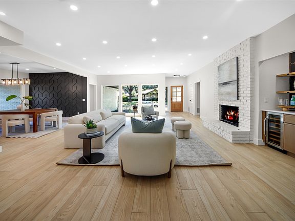 Floor-to-ceiling brick fireplaceNew windowsAbundance of windowsCustom wet barLush new landscapingExpansive sliding glass doorsQuartz countertops