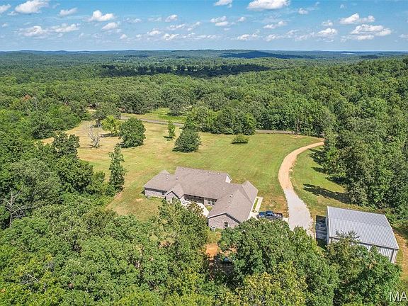 Breath-taking home on 64 acres (m/l) on top of the hill! You have to see this 3067 sq ft (m/l) ranch style home. Gorgeous home with a large 40x40 shop building. The home features some of the nicest cabinets you will find, granite countertops, high vaulted ceilings, two master bedrooms, (3 bedrooms total) and three bathrooms. Travertine tile, custom built-in bookcases, Anderson windows and doors, gorgeous windows and window treatments. The designer hit every element on this home. It sits on top of the hill with a view for miles. Seller will leave all kitchen appliances. Everything on one level with no stairs! Quiet, private patio area with daily deer visits. (Also available with only 6.5 acres (m/l) for $435,000. Ask for details.)