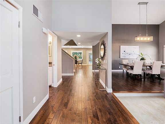 MORRISON RANCH CAPTIVATING STUNNER - Feast your eyes on this remarkable home that simultaneously exudes modern living and plush comfort. The high ceilings lavishly welcome you as you take in the open space upon entering. The living room is spacious, bright, and open-decked with a fireplace and large windows that expose an attractive exterior view. The adjacent dining room is perfect for hosting and entertaining with wide open space for plenty of guests. The kitchen sparkles and shines for your culinary convenience. The white wood cabinetry, modern backsplash, and quartz countertops. The kitchen opens up to a large cozy area perfect for a great room, kitchen table, TV room, family room - all to encourage your personal comfort and endless creativity. This room has direct access to the patio and entertainers backyard, with a large swimming pool and plenty of outdoor lounge space. As you make your way upstairs you will enter the master, where two beautiful windows hug the large room. The master bathroom is what designer dreams are made of - accompanied with slate gray wood flooring. The master also features an additional room perfect for a nursery or office. Two additional bedrooms are located upstairs, with a gorgeous bathroom that accentuates the theme of the master. Throughout this home you will find nothing less than the utmost sophistication. Located in one of the most peaceful and serene neighborhoods of Agoura Hills.
