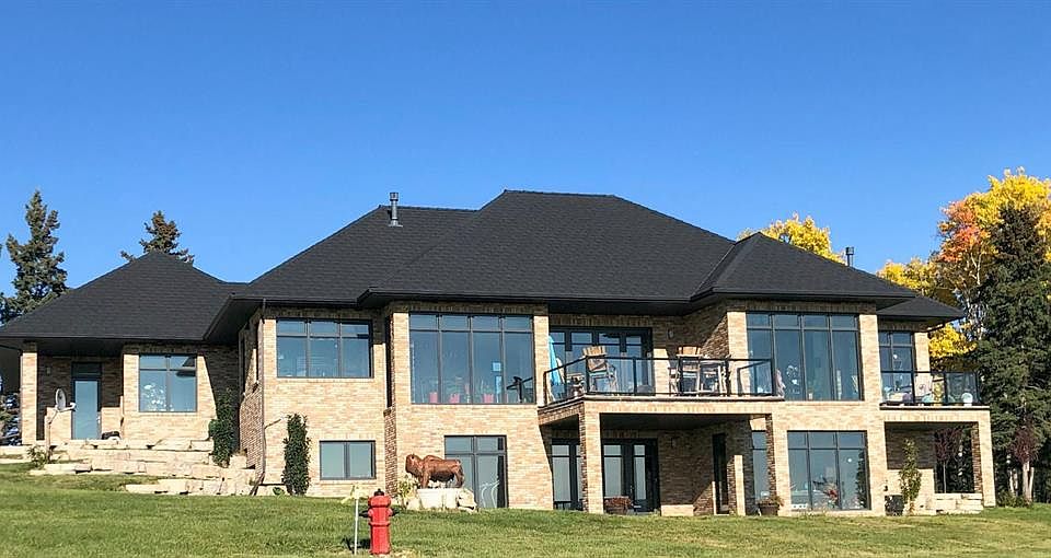 Set 300 feet above the Red Deer River valley, this CUSTOM-BUILT ESTATE blends striking design with unmatched durability. Just five minutes from Sundre, it showcases sweeping 100-mile vistas—among the very best MOUNTAIN VIEWS IN MOUNTAIN VIEW COUNTY—while offering the security of fortress-like construction. Situated on 20 ACRES, both the HOME AND SHOP feature FULL BRICK EXTERIORS and a 100-YEAR EUROSHIELD RECLAIMED RUBBER ROOF, providing maintenance-free protection that endures extreme weather. TRIPLE-GLAZED LOEWEN WINDOWS with steel exteriors and Douglas fir interiors maximize efficiency, while DUAL FURNACES and DUAL A/C UNITS ensure comfort in every season. Inside, premium finishes define every space. The CHEF’S KITCHEN boasts SOLID CUSTOM CABINETRY, LEATHERED GRANITE COUNTERTOPS, TWO PANTRIES, a BUTCHER BLOCK ISLAND, SUB-ZERO 48” FRIDGE, and LA CORNUE 5-BURNER STOVE WITH DOUBLE OVEN. FLOOR-TO-CEILING WINDOWS and ACCORDION DOORS WITH PHANTOM SCREENS open to a LARGE WEST-FACING DECK, framing endless views. Throughout, 10-FOOT CEILINGS, 8-FOOT DOUGLAS FIR DOORS, and GRANITE FINISHES elevate the home’s timeless quality. The MASTER RETREAT features a PRIVATE DECK, WALK-IN CLOSET, and a SPA-INSPIRED ENSUITE with FIREPLACE, AIR-JET TUB, and WALK-IN SHOWER. A SECOND BEDROOM, OFFICE, BATHROOM, and LAUNDRY ROOM carry the same meticulous standard. The WALK-OUT BASEMENT impresses with 9-FOOT CEILINGS, IN-FLOOR HEATING, and ACCORDION DOORS opening to a STAMPED CONCRETE PATIO. The ATTACHED 27X27 GARAGE, level with the main floor, enhances convenience and accessibility. Outdoors, STONE RETAINING WALLS, FULLY RAIL FENCED, and a FULLY FENCED PERIMETER underline strength and security. The 30X60 HEATED SHOP includes IN-FLOOR HEAT, a BATHROOM WITH WALK-IN SHOWER, OFFICE, LAUNDRY, MECHANICAL ROOM, and UPPER STORAGE—a fully equipped space for work or hobbies. Additional features include a CATTLE WATERER, WATER HYDRANTS, SOLAR-POWERED GATE, and 17 ACRES OF PASTURE. The property offers YEAR-ROUND RECREATION: hiking, fishing, horseback riding, and whitewater rafting on the Red Deer River. With enduring infrastructure and timeless design, it delivers privacy, resilience, and exclusivity—yet remains only minutes from Sundre’s HOSPITAL, SHOPPING, AND AMENITIES.