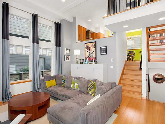 Modern Morgan Junction townhome in West Seattle! Light-filled end unit with high ceilings in living room, floating staircase to eat-in kitchen and upper level master suite, plus lower level guest suite. Features include custom blinds, bamboo floors, Bertazzoni Gas range, Bosch dishwasher, Caesarstone counters, Grohe faucets and Toto toilets. 50 year rubber roof. Custom pavers, river rock and drip-planters on side yard. One off-street parking space in alley. Close to RapidRide C Line stop & more!