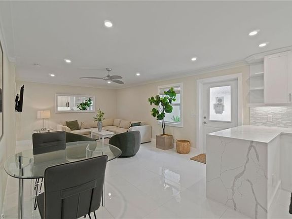 This completely renovated first-floor condo is located Everglades Club at Village Green, a 55+ community just steps to the beach, Naples Pier, and all the dining and shopping of Third Street South and Fifth Avenue. No room was untouched—this home features recessed lighting, new furniture, and a modern coastal design throughout. The open floor plan flows with polished tile, a bright kitchen with a spacious pennisula, and spa-inspired bathrooms with walk-in showers. One bedroom offers private outdoor access, while the other provides an en-suite bathroom with stunning natural light. Additional updates include a 2023 water heater and impact-resistant windows and doors throughout. Enjoy peaceful courtyard and park-like views from your private patio. For added convenience a designated parking spot and bonus storage locker. Village Green residents benefit from a community pool, clubhouse, bocce and shuffleboard courts, library, game room, and workshop—all in the heart of Olde Naples.