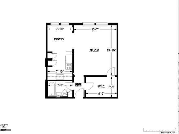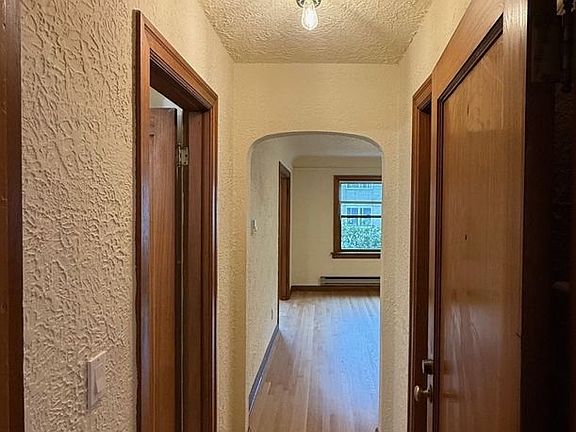 Unit 205 is situated on the North side of the building and receives great natural light. It has freshly refinished hardwood, vinyl in the kitchen, and original tile flooring in the bathroom. The kitchen has been updated as well as the bathroom.
