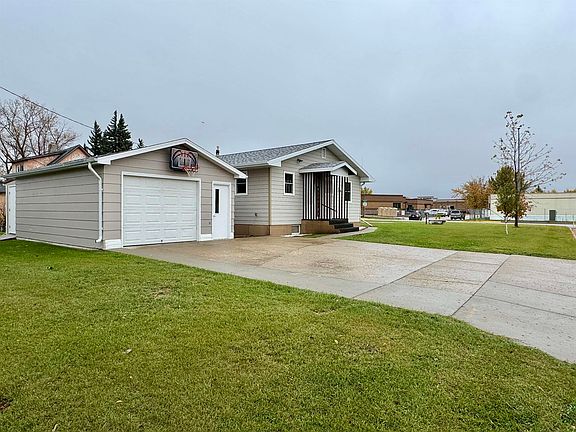 A well-cared-for ranch-style home on a nice size corner lot in Stanley, ND! This property has been thoughtfully maintained and offers brand-new shingles on the house and garage with fresh interior paint throughout. Inside, you’ll find a spacious entryway with a coat closet that leads into a bright kitchen updated in 2017. It features white soft-close cabinets with pullouts, tile backsplash, gas stove/oven, and a new faucet. The dining area opens to both the kitchen and the large living room, which includes a new picture (middle window) window and access to the freshly painted 10' x 14' deck. The main floor includes two bedrooms, a remodeled full bathroom (2017), and a large laundry room complete with cabinet and counter space—washer and dryer included. The partially finished basement adds great opportunity with a half bath, one non-conforming bedroom, a hobby/office/misc. room, and plenty of space for storage or a possible finished second living area. The roomy detached one-stall garage includes a workbench, cabinets, and an attached storage room with double doors—plus an additional storage shed with double doors and loft space for even more storage. Outdoors, you’ll appreciate the extra parking spaces, a brick patio in the front lawn, newer trees, and established perennials to add additional beauty to the property. A private well is an added bonus—perfect for watering the lawn at no cost. The furnace was replaced in 2015. This move-in ready home combines charm and functionality—all in a great Stanley location!