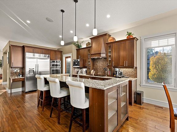 Welcome to The Quarry — where timeless craftsmanship meets comfort & livability. This beautifully designed home offers soaring ceilings, expansive windows & an open-concept main level, filling the home with natural light. A thoughtfully defined formal dining area adds an elegant touch — set apart just enough to feel special, yet still visually connected through architectural openings. The spacious kitchen & great room open onto a large deck — ideal for morning coffee or evening gatherings while enjoying the peaceful surroundings. The main level is anchored by a generous primary suite featuring a spa-inspired ensuite with heated tile floors, jacuzzi tub, walk-in shower & impressive walk-in closet. Every detail reflects thoughtful design and craftsmanship. Downstairs, the lower level offers flexibility with three additional bedrooms, plus an office, fitness or storage area, & a large family room complete with a wet bar — perfect for entertaining guests or movie nights. The sound system has over 20 speakers both inside & outside! Step outside to a fully fenced backyard with a luxury hot tub, and the garage is heated, great for a shop! Set in a desirable location near Canyon Falls Middle School & the amenities of The Ponds, this home suits downsizers who love to host or families with kids seeking their own retreat. Classic architectural details, rich finishes & a true sense of pride in construction make this property a rare find in one of Kelowna’s most sought-after communities.