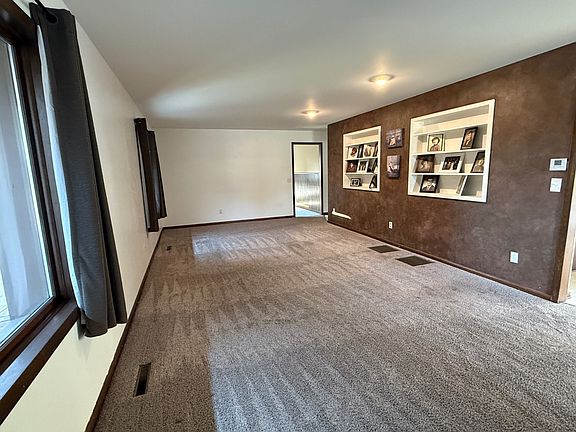 Modern Ranch with Space & Comfort This modern ranch-style home blends charm and function with its cedar siding, brick accents, and thoughtful updates throughout. With over 2,600 sq. ft. on the main floor and just over 1,000 sq. ft. in the basement, there's room for everyone to spread out. The main level features three bedrooms and two bathrooms, including a primary suite with custom closets, an en suite with double sinks, and glass patio doors opening to a private patio-your own peaceful retreat. A major addition completed in 1976 expanded the home with a large family room anchored by a cozy wood-burning fireplace and a formal dining area with custom built-in cabinetry-both refreshed with brand-new carpet. The partial basement was updated this year with new sheetrock, lighting, and wiring. It also offers a nonconforming bedroom, a third bathroom, and versatile space to fit your needs. Practical updates include two brand-new furnace and A/C units for year-round comfort. Outdoors, a two-car metal garage with workshop space (built in 2017) adds incredible functionality, along with a covered patio out back-perfect for entertaining or relaxing. This home truly combines comfort, storage, and modern updates, making it a place you'll be proud to call home.