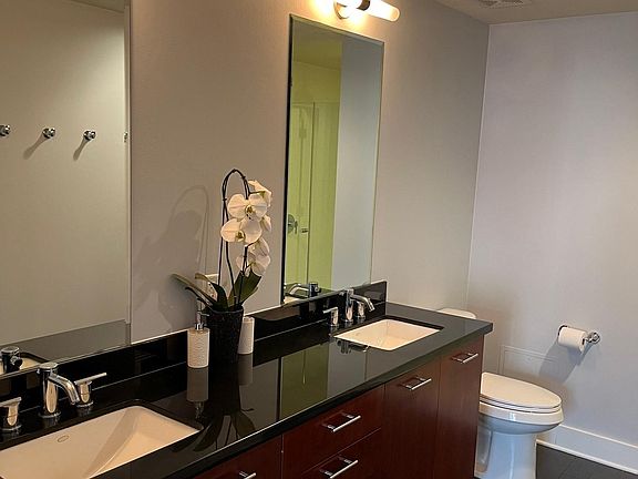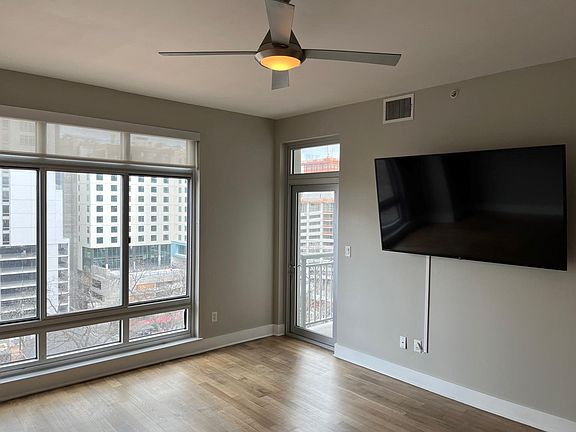 Stylish and modern condo in the heart of downtown and the Rainey Street neighborhood. This condo features one bedroom with an attached bathroom and a double vanity, large walk-in closet and a spacious soaking jet tub/shower combo. This unit includes a den/office area with a built-in double size Murphy bed which provides for a multi-use area for high flexibility and utility. The unit features an open floor plan with oversized windows, newly refinished hardwood floors and a large private balcony. Enjoy all Austin has to offer with Lady Bird Lake just steps away for hiking and biking, along with nearby dining and entertainment. The many upgrades to this unit include a recently installed countertop with a spacious breakfast bar, recently installed bedroom and closet carpeting, stainless steel appliances, including a recently installed microwave and range with a convection oven. Laundry closet in the unit includes a washer and dryer. The building amenities include 24hr concierge, secure access and parking, a rooftop pool with large deck, grills and a cabana, a newly renovated fitness center, conference room and lobby renovations. Tenants of building also have access to the adjoining Hotel Van Zandt Pool Deck.