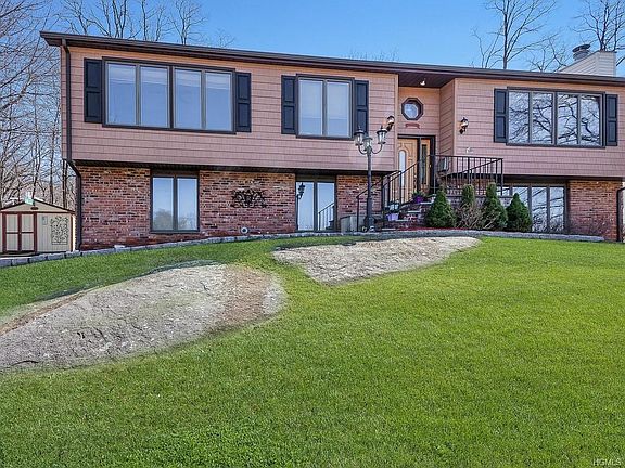 Immaculate High Ranch home in Peekskill! In the interior of this 3 bedroom 3 bathroom beauty you will find a fireplace, freshly refinished hardwood floors throughout, high ceilings, large windows with tons of great lighting all day. Updated heating system. Beautiful sunsets. Stained glass window in foyer. Master bath with jacuzzi tub! Finished basement with laundry room, separate family room and an attached 2 car garage with work bench. Exterior features include a large trex deck off of the dining room with a remote operated retractable awning, enormous front yard with lots of room for gardening, fenced portion of the backyard, tandem driveway and storage shed. Short distance to school, park and shops! Basement is included in square footage as it's above ground, included in living space with a C of O.