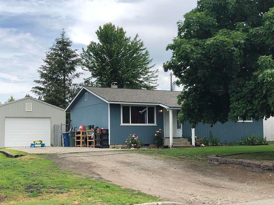 Spacious 5 bedroom (two nonconforming), 2 bathroom house smack-dab in the middle of Post Falls and convenient to everything. Recent upgrades include laminate flooring and carpets on main level, exterior paint, and new roof and windows in 2016. Washer and dryer hook-ups on both levels and all appliances stay, including 2 freezers in the basement (1 upright and 1 chest style). Large lower level family room equipped with pellet stove for added warmth. Fully fenced back yard and newer 20'x22' shop with concrete floor. Central air added 2019.