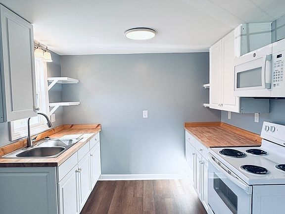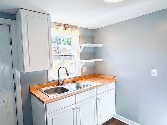 The modern kitchen has been fully renovated with new cabinetry, wood-style countertops and updated lighting, offering both functionality and style. The bathroom has been tastefully refreshed with new fixtures, and contemporary built-in shelving for added storage.