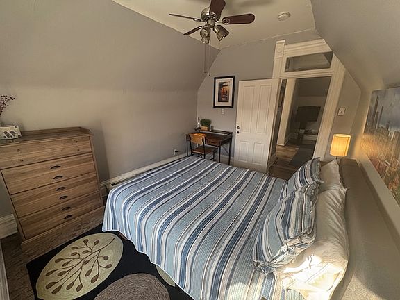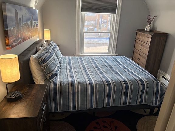 FURNISHED MID TERM RENTAL 30 DAY MINIMUM. This is a furnished 1 bed 1 bath apartment at 6th and Elati St in Denver. The house is a victorian home divided into 4 units. Each unit has it's own entrance, kitchen, bath, bedroom. All 4 units share a laundry room. The unit is on the 2nd floor and is fully furnished, stocked kitchen, wifi, desk area, electric, heat, water, trash, recycling, and off street parking. The ideal tenant would be one quiet, responsible person with no pets and looking for a 30, 60, or 90 day stay rental. Longer if it worked out. It is on a busy street, but it has never been a problem and from inside, the traffic noise is not disruptive. Central to downtown, I-25, Denver Health, South Broadway. Available now.
