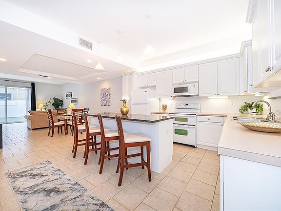 LOCATION! LOCATION! LOCATION! This beautifully maintained townhouse is perfectly situated just steps from the community heated swimming pool, spa, 24-hour fitness, clubhouse, and business center—everything you need right at your doorstep for resort style living! Located in a secure, gated community and move-in ready, this spacious 3-bedroom, 2.5-bath home offers both comfort and convenience in every detail. The large, bright kitchen features ample cabinetry, a newer granite island, and a double oven—ideal for everyday meals and effortless entertaining. Adjacent to the kitchen, the expansive dining room boasts an elegant tray ceiling and recessed lighting, creating a modern, upscale ambiance. The generously sized living room offers plenty of space for relaxing or hosting guests. Sliding glass doors lead to a screened-in patio—perfect for enjoying beautiful Florida days in comfort and style. Upstairs, the desirable split floor plan places the primary bedroom on one end for added privacy, with the second and third bedrooms located on the opposite side. One of the secondary bedrooms can easily be converted into a home office, making it perfect for today’s work-from-home lifestyle. The spacious primary suite includes a walk-in closet and a private ensuite with a tub/shower combination, granite countertop, and ample storage. The guest bathroom features a walk-in shower, granite countertops, and generous storage as well. All bathrooms are finished with granite countertops, adding a sleek, modern touch throughout. The first floor is finished with tile for easy maintenance, while the upstairs bathrooms also feature tile flooring, and the bedrooms are carpeted for added comfort. The home has a new AC unit (2024). Entire house painted (2024). A prime location just moments from Disney World, Silver Spur Arena and other major attractions, shopping and entertainment. Don’t miss this ideal combination of space, amenities, and location—schedule your private showing today!