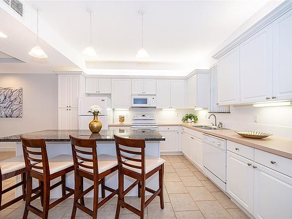 Newer granite islandGranite countertopCommunity heated swimming poolElegant tray ceilingAmple storageDesirable split floor planTile flooring
