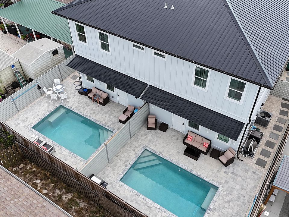 Brand new, fully furnished and decorated 30A-style townhome in the heart of Panama City Beach with stunning Gulf views! This high-quality construction is ideally located within walking distance to the beach, restaurants, and shops--perfect as a primary residence, vacation home, or investment property. No HOA! Enjoy 10' ceilings, 8' doors, and luxury finishes throughout. The spacious floor plan includes a ground-floor bedroom and full bathroom--ideal for guests. Upstairs, the master suite offers a private retreat with a large balcony to soak in the Gulf breeze and salty air. Two additional upstairs bedrooms share a full bathroom. Relax and entertain outdoors with a saltwater heated pool and plenty of space to enjoy Florida's sunshine. Zoned for short-term rentals, this townhome offers excellent income potential in a prime PCB location. Don't miss this incredible opportunityschedule your showing today!
