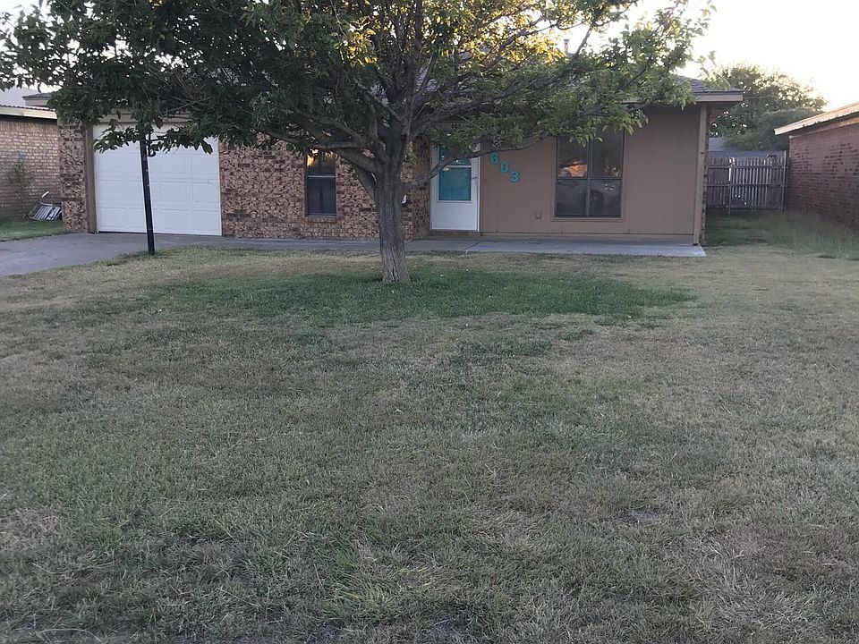 Cutest 3 bedroom in town! Colorfully painted, this house just makes you smile when you walk in it! Large living area overlooks the kitchen dining, plus the big kitchen boasts tons of cabinetry! 3 bedroom, 2 vanities and 2 commodes, sharing a big shower/bathtub combo!...Great floor plan, single car garage, nice large backyard with additional parking space for 2+ cars behind the wood fence (alley access)! 2 nice sized storage buildings are included with the sale of the house!! This one is a keeper!
