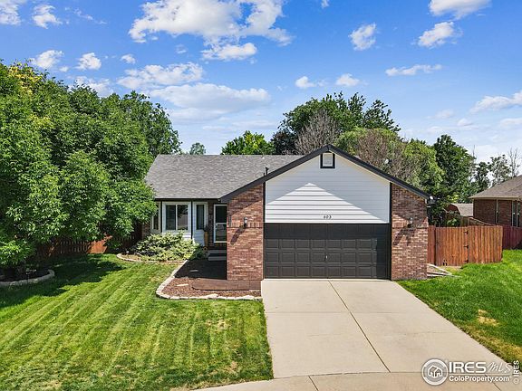 Welcome to 603 Hemlock Dr, a charming property on a desirable corner lot with a spacious wrap-around backyard adorned with mature trees, offering both privacy and natural beauty. This ranch home, free from HOA and Metro District restrictions, features brand new shaker cabinet doors, and newer Pergo waterproof LVP flooring throughout. The remodeled primary bathroom boasts modern fixtures and is perfect for main floor living. The large patio, shaded by mature trees, provides an ideal outdoor lounging space, while the professionally landscaped yard enhances the home's curb appeal. Additional conveniences include an 8" x 14" storage space and a convenient kitchen pantry. Located within walking distance to Eastman Park and the public library, and just minutes from the new Windsor Lazy River, Pelican Lakes, Highland Meadows, Farmers Market, and more, this home offers unparalleled accessibility to local attractions. The fully finished basement adds even more living space with a full bath featuring an upgraded jet bathtub for a spa-like experience , rec room, and extra bedroom. The roof is only two years old, and radon mitigation is in place for your peace of mind. Don't miss out on this exceptional property - this one won't last!