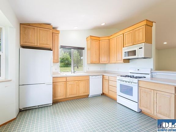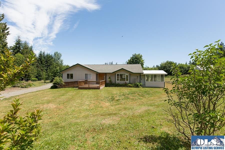 Very nice setting at the end of road. 3Bd. 2Ba. 1534 sq. Ft. nice open floor plan on 2.45 Acres. Laminate & Tile floors, Cabinets in good shape, Master Bd. has walk-in closet, double sinks in the bath. For heat the home has gas stove and heat pump. Detached single car garage with a shop. Hobby shop has 1/2 bath, heated with 220 volts. In between Sequim and Port Angeles close to amenities of both towns.