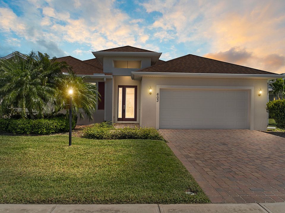 Discover your dream home in a prestigious gated community, ideally located just steps from the golf course. This impeccable property is situated on a quiet cul-de-sac, featuring stunning lake views, an upgraded kitchen, crown molding, plantation shutters & low HOA dues. The home exudes pride of ownership and is ready for immediate move-in. Enjoy the convenient short walk to dining, golf course, pickleball courts, and a community clubhouse equipped with a spacious pool. This home provides a perfect blend of luxury, comfort, and accessibility, making it an exceptional choice for discerning buyers.