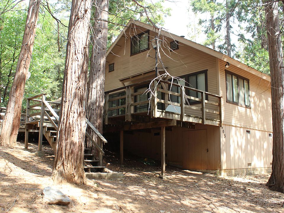 This house has been remodeled in 1999 but other add on were done over the years. This property is in the desirable Loop location of Camp Nelson. 1st floor is an open floor plan with a woodstove and propane floor furnace. Two bedrooms, one a master suite. Upstairs is another bedroom, sleeping loft and a 1/2 bath. A mix of drywall and knotty pine. Lots of off street parking plus large storage area under the house. The Loop location puts you easy walking distance to the bar, grocery store and the meadow where most events are held. The deck area has propane plumbed for your BBQ with plenty of space for outdoor dining and sitting area.