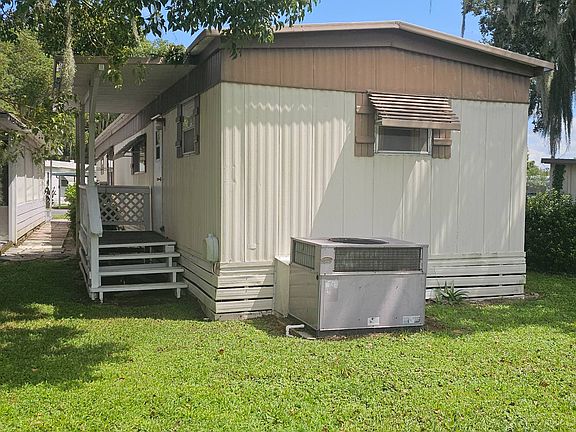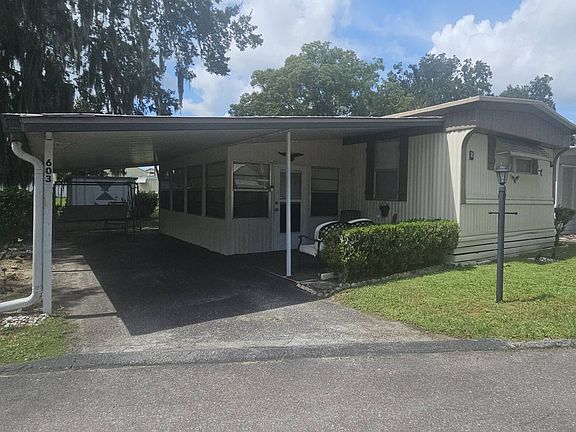 Affordable Home with LOW lot rent in Peaceful 55 and up, Waterfront Community. This split-plan, two bedroom, two bath home needs some new flooring but features indoor laundry, eat-in kitchen, and room to relax! There's a covered outdoor Patio, an elongated 10 x 30 ft covered carport, and a 10 x 18 ft Florida room, perfect for entertaining. Bring your personal touches, some TLC, and a few updates and make it your own. This community features Boat docks right on Lake Griffin, where you can enjoy the Sunsets, or even test out your fishing skills! It's close to shopping, dining, and the local Hospital, plus it's about an hour to either coast. Don't miss out, CALL NOW!