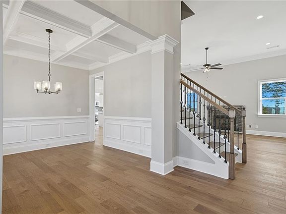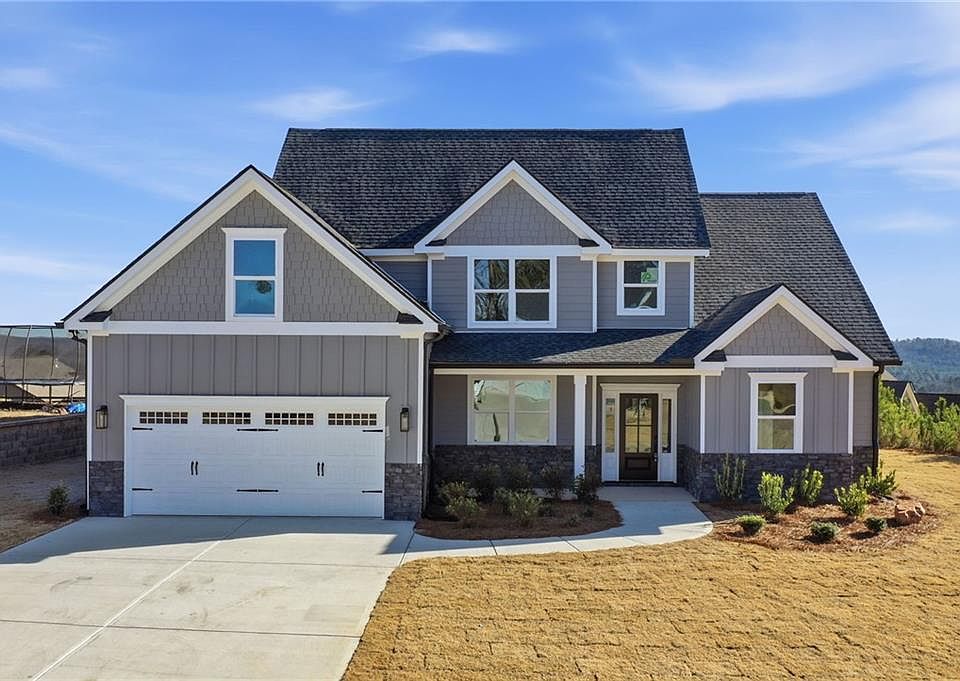 Welcome home to this beautiful new construction featuring a thoughtfully designed master-on-main floor plan and charming curb appeal that makes a great first impression. Step inside to a light-filled family room with a vaulted ceiling and cozy fireplace, seamlessly open to the breakfast area and well-appointed kitchen, perfect for everyday living and entertaining. The kitchen offers an abundance of cabinets and counter space to make meal prep effortless, along with easy access to the garage just steps away for added convenience. For larger gatherings, enjoy a dedicated formal dining room. The owner’s suite is located on the main level and features dual vanities, a separate tiled shower, and a relaxing soaking tub. A powder room completes the main floor. Upstairs, you’ll find two generously sized secondary bedrooms, a full hall bath, and a spacious bonus room above the garage—ideal for a home office, game room, or even an additional bedroom. The family room leads out to a covered patio overlooking the level backyard, perfect for outdoor relaxation. Located in the desirable Mountain Brooke community, this home is just minutes from Downtown Ball Ground with its charming shops and restaurants. A wonderful opportunity to enjoy modern living in a convenient location!