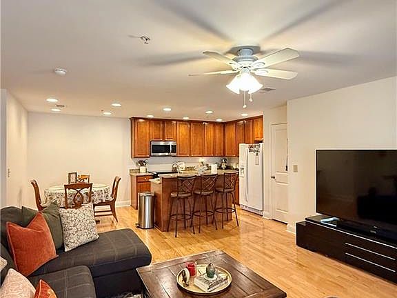 Nestled in the Heart of Smyrna you will find a hidden gem of a community – Madison at Village Green. Community offers a very topiary, well landscaped environment hidden by gorgeous vegetation & beautiful tree’s along with a ton of green space – perfect for pets! This spacious, Top Floor, 3Bed/2Bath home is move-in ready and extremely inviting. Features include: Granite Countertops, Deep Cherry Cabinets, Hardwood Floors, Stainless Steel Oven Range & Microwave, Dbl. Sided White Fridge, Carpet in Bedrooms, Kitchen Pantry, Large Laundry Room with Storage, Ceiling Fans throughout, 2nd bath in hallway, Primary Bath offers jacuzzi tub and separate tiled shower, Custom Organized Shelving Closet, large closets, spacious additional bedrooms, “Amazing” outdoor balcony & a large spacious temp. controlled utility room located out on balcony. This community is located within walking distance to Smyrna Village which offers spacious parks, restaurants, grocery stores & wonderful shopping – right at your fingertips. In addition, you are minutes away from the Chattahoochee River and The Battery “Home of Atlanta Braves” which is an energetic mixed-used development connected to Truist Park! Arrange to see this charming, appealing, overly spacious 3 Bedroom Home that expresses “Love” today!