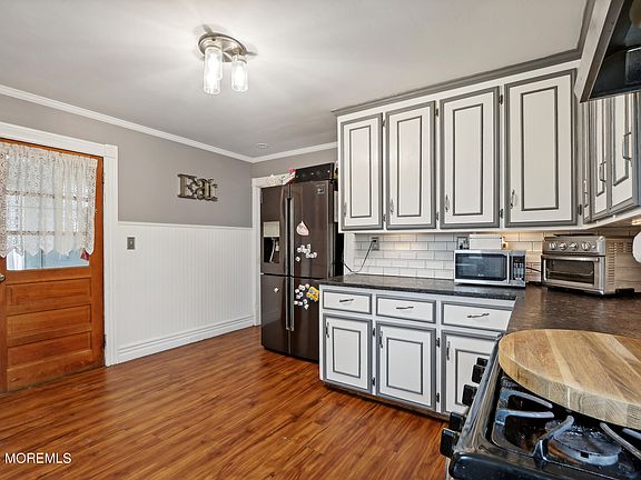 Charming farmhouse colonial with wraparound front porch. Large eat-in-kitchen and dining room. First floor offers full bath and bedroom. Three bedrooms on 2nd floor with large bath featuring stall shower and separate bathtub. Large finished walk up attic offers expansion possibilities. Newer HVAC system. Hardwood floors on 2nd floor and attic. Centrally located to shopping and many restaurants, approximately 2 miles to Long Branch beaches.
