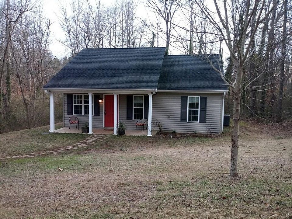 PERFECT starter or downsizing home! Nothing this new in this price range! Everything you want - 3 beds/1.5 baths, covered front rocking chair porch, back patio for BBQs & bird/nature watching, TWO ACRES for space & privacy at the end of the road. Extras you'll love - skylight & vaulted ceilings for lots of natural light, energy efficient, all electric & low maintenance. One minute to downtown or Hwy 70 for commuting. New paint & carpeting. Brand new SS appliances to be installed 3/27 & to convey. Don't miss this one!