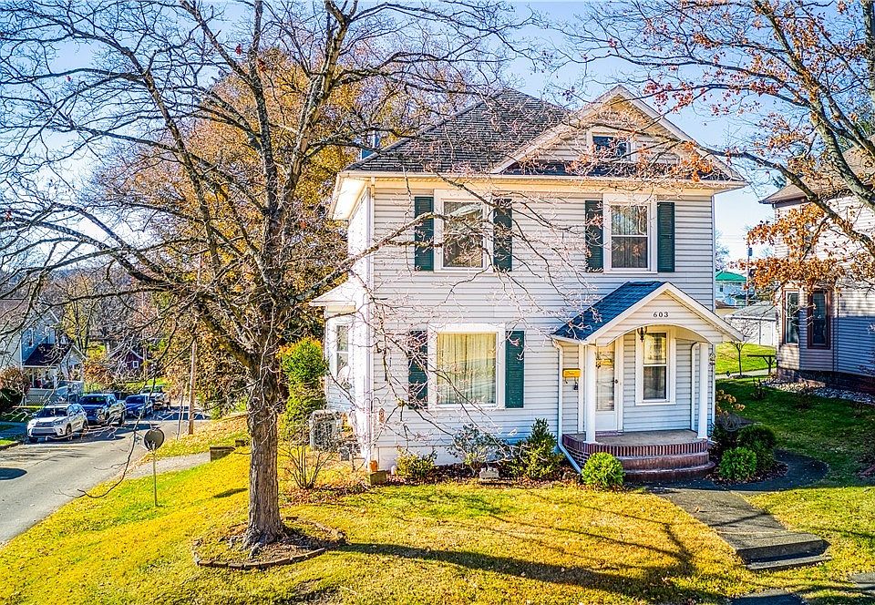 Discover your dream home in the heart of our town! Step into a world of old charm with this beautiful centennial home. Nestled on a corner lot. Centrally located close to town and park. Home has a great mixture of character and updates throughout. Off the covered front porch, you walk right into the large living room and beautiful staircase. Up the stairs is 3 nice size bedrooms, each has a closet. A large bathroom with double sinks and lots of storage make it perfect for the family. Also has an attic space if you need additional storage or perhaps another bedroom or office. Back downstairs on the main floor is the dining room. With its beautiful bay windows seats is the perfect spot to sit down and unwind. Walking into the kitchen you will see newer countertop and lots of cabinets. There is a large bonus room and half bath too. In the basement is the washer and dryer. More storage and a spot to pull the car in! This is a must see so call Sheri or your favorite realtor to get a tour today.