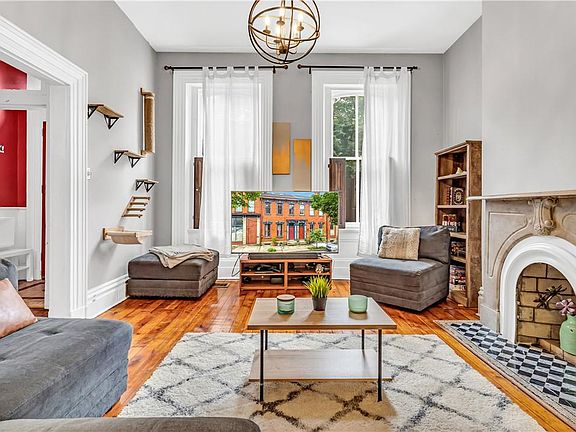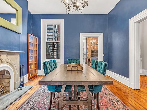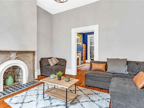Prepare to be enchanted by your new city home! Located in the heart of the historic Mexican War Streets, this property boasts character and exquisite detail. Upon entry you'll immediately take notice of the stunning original hardwood floors, 14ft ceilings, and marble fireplaces in the living and dining rooms. The kitchen features an original wood-burning fireplace and has been upgraded with stainless steel appliances and beautifully unique granite countertops. The first floor also hosts a powder room convenient for guests. Stroll upstairs (and don't forget to admire the skylight!) to two large bedrooms, each with a decorative fireplace and exposed brick. The massive second floor bathroom is equipped with a standing shower, jetted tub, and features wood beams and another decorative fireplace. A third floor suite also has its own attached bathroom, skylights, and access to a rooftop deck with city views - just in time to watch summer fireworks! Don't miss out on this truly special home!