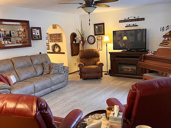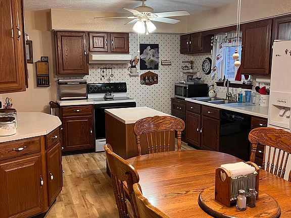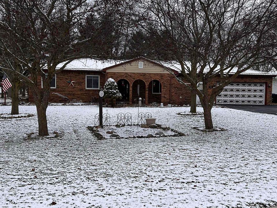 Incredible well cared for 3 bedroom, 2 bath brick home on full basement with attached 2.5 car garage and an additional 2 car detached garage on a beautiful wooded lot with mature trees. Asphalt driveway and approach to both garages. Bathrooms recently remodeled, new metal roof 2023, new furnace Jan. 2024, new AC July 2023, new water heater March 2024, new washer & dryer Dec. 2023. Sparkling kitchen with eat in dining, portable island. Large living room and family room allow for plenty of room for entertaining. Den in basement can double as a private office, exercise room or space of your choice. Mechanical room has plenty of room for storage. New epoxy flooring in the attached garage, detached garage for additional storage or the perfect hobby shop. Beautifully landscaped, large wooden deck and play set. Kitchen appliances, washer, dryer, water softener, pool table are all included in the listing price.