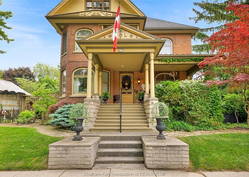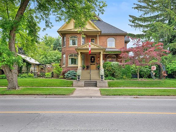 This iconic Victorian-style home stands proudly in the heart of Dresden, offering a rare blend of character, meticulous craftsmanship, charm, and is being offered for the first time in over 60 years. From the moment you arrive, you'll be captivated by the beautifully landscaped walkways, intricate woodwork, rich trim details, pocket doors, and the impressive scale of the home—truly unlike anything else on the market. Lovingly maintained and thoughtfully updated over the years, the home preserves its original charm while offering plenty of improvements. The main floor offers a large kitchen with ample cabinetry, joining a large dining room, providing a great space for entertaining. Two sitting rooms for potential office/dens and a 2pc bath complete the main floor. Upstairs, you’ll find 4 spacious bedrooms, including a generous primary suite complete with a large ensuite. Wide hallways and transom windows enhance the sense of space and elegance, with access to a balcony overlooking North Street. The third-floor attic presents even more potential—ideal for a home office, creative studio, or cozy retreat. Meanwhile, the fully finished basement includes a separate entrance, a large family room, additional bedroom, kitchenette, and an updated 3pc bathroom—perfect for multi generational living, guests or potential rental income. Step outside into a storybook setting: private and peaceful grounds featuring a pergola, winding garden paths, serene sitting areas, and a one-of-a-kind she shed complete with hydro—perfect for hobbies, relaxation, or creative pursuits. A concrete drive leads to the detached double-car garage, rounding out this extraordinary property. Property to be sold in "as-is" condition as per request of the estate.