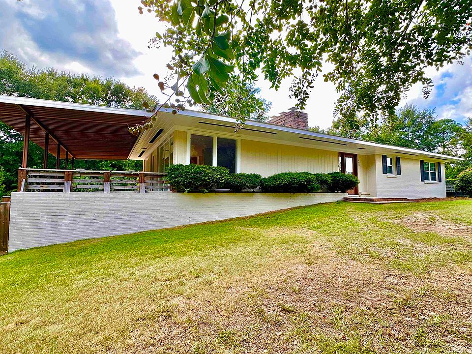 Cool Mid Century Modern gem on an amazing 1.6-acre lot! Clean lines, open spaces, and expansive windows offer a retro setting overlooking a beautiful yard. Gorgeous white pine flooring throughout the house. The great room features an original stacked stone wood-burning fireplace and opens seamlessly into the dining area and kitchen, offering an open feeling with plenty of room to entertain. The covered lanai has a treehouse feel and makes an excellent addition for outdoor living. There are two full bedrooms and an additional large room that could be used for a bedroom, office, or extra dining. All new efficient windows throughout. On-demand water heater. The highlight of the home is the amazing one-acre fenced yard that is brimming with fruit trees. The most adorable chicken coop and vegetable garden are ready to stock for your fresh eggs and veggies! A unique brick fire pit in the back gives campfire vibes. There is a one-car garage/storage on ground level. Entirely fence backyard.