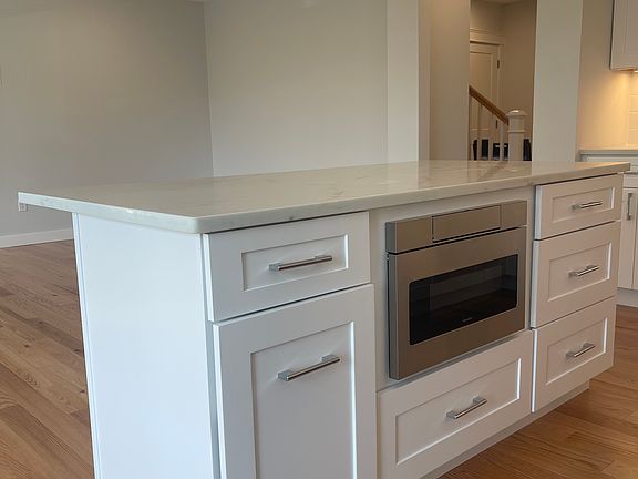 The main level features a bright, modern kitchen with quartz countertops, stainless steel appliances, island with built in drawer microwave and a dining area which opens up to a spacious living area. A first floor primary suite offers a walk-in closet and private bath with a custom tile shower. Upstairs you will find a second bedroom, a third bedroom/office, a full bath, and a versatile loft space perfect for additional living or home office space.
