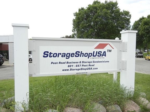 Storage Shop USA - Post Road Condominiums. 1,250 sq ft, fully insulated, heated overhead door, very clean, excellent condition. 8 years old.