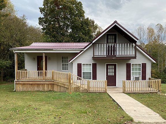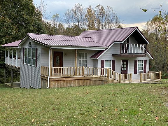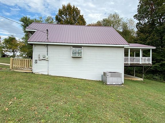 Here is your opportunity to own a Lake home or vacation property. Located only 2 miles from Holmes Bend Marina and Green River Lake. The tri level home is approx. 1,340 Sq. Ft with a bedroom, bath, kitchen and laundry on the main level. Step up a few steps to the large living room with cathedral wood ceilings and walls which opens up to a beautiful 24 x 24 covered deck. Second bedroom is upstairs and there is one room in the basement with walk out entrance. Situated on 2.36 acres m/l with woods and a creek. Located in a lake oriented subdivision with minor restrictions. Some repairs needed.