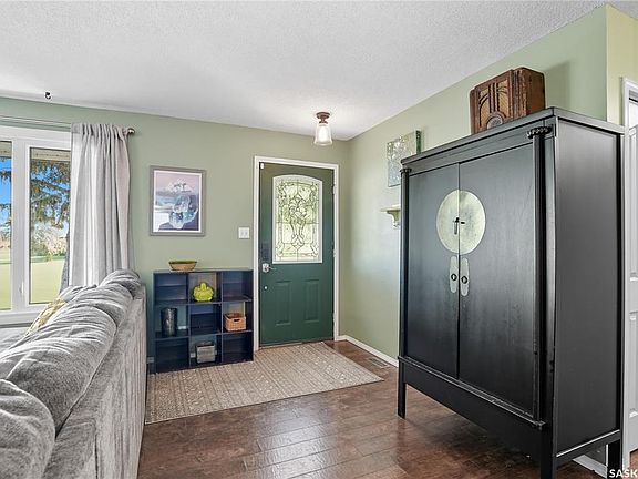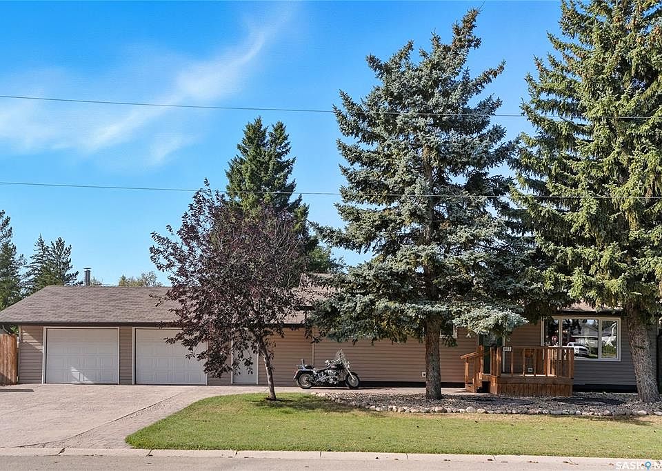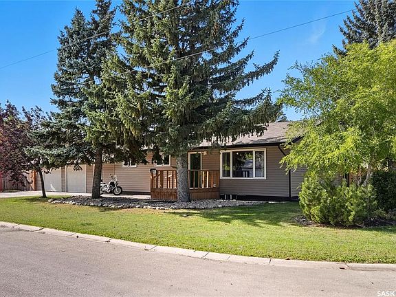 Welcome to small town living just minutes from Saskatoon & Martensville. This spacious bungalow is located on a sprawling corner lot, across the street from a park and around the corner from the edge of town. An open yet cozy floor plan greet you as you enter the home. The upgraded kitchen cabinets provide ample storage and plenty of counter space for the cooking & baking enthusiasts. Three bedrooms on the main floor includes a primary bedroom with an attached two piece ensuite and a seperate 4 piece bathroom to ound out the main floor. The updated basement includes a three piece bathroom, spacious family room perfect for movie nights and a nook that can accomodate a large desk for work from home space and large den that was being used as a bedroom. Outside, you will find a double garage attached by enclosed breezeway. This home features updated shingles, windows and siding as well. All of this sitting on a massive fully landscaped and fenced corner lot with mature trees and garden area. This home is oerfect for those looking for a bit more space, small town living but still close enough to the city of Saskatoon. Don't miss your chance to view this home, call your Realtor® today for a private showing!