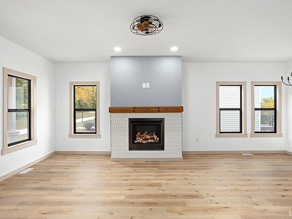 Ventless fireplaceDining areaExpansive great roomThree bedroomsVibrant exterior colorsStainless steel appliancesSolid surface countertops