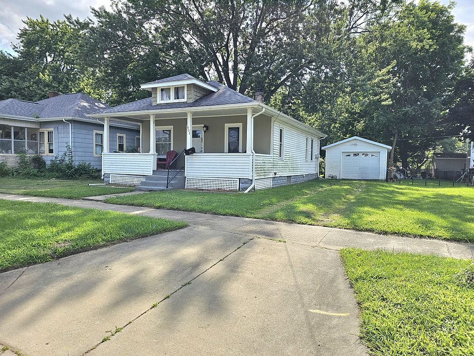 Why rent when you can buy this affordable bungalow within minutes from local amenities. This two bed, one bath home features a spacious living room, covered front porch, full basement and one car garage. In the kitchen you will find a large pantry, ample cupboard space, and eating bar. Just off from the kitchen is a mudroom leading down into the dry basement where you will find the laundry area and plenty of additional storage room. This home has had several upgrades including a partial roof replacement including decking, flashing, and shingles. The cast iron sewer pipes have been replaced with PVC, updated electrical panel, PEX water lines, the floor has been leveled and supported, and a newer hot water heater and water softener with a water filtration system.
